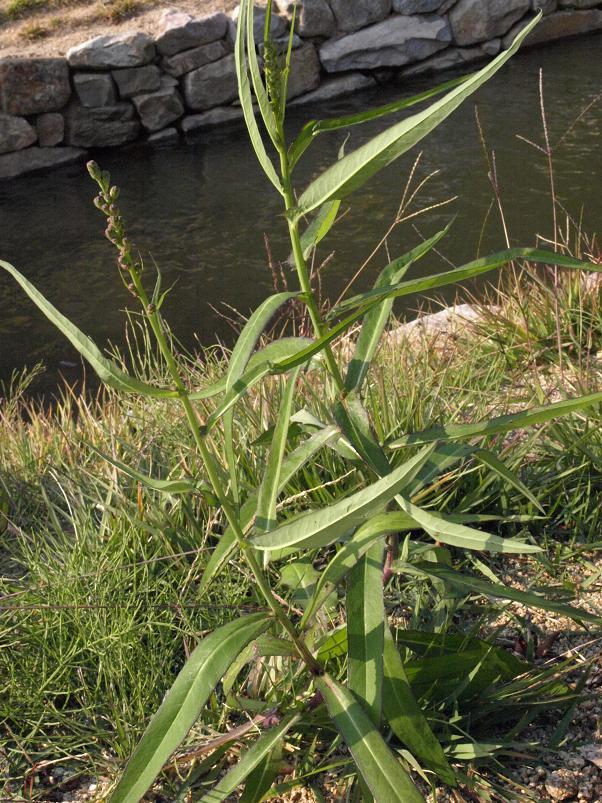 줄기잎은 호생(어긋나기)하고 피침형 또는 긴 타원상 피침형이며 끝이 뾰족하고