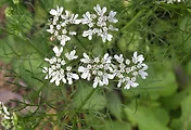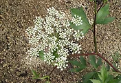 꽃은 7-8월에 피고 백색이며 원줄기 끝과 가지 끝의 큰 산형화서에 달리고