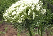 꽃은 8-9월에 피고 백색이며 원줄기 끝과 가지끝의 복산형화서에 달리고