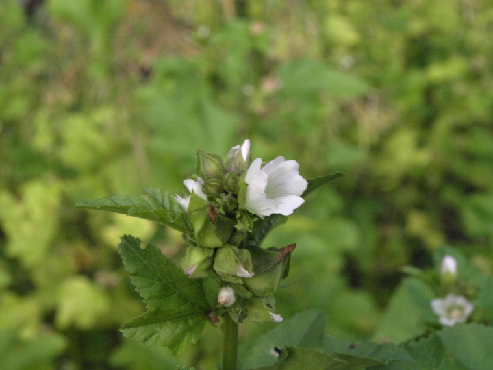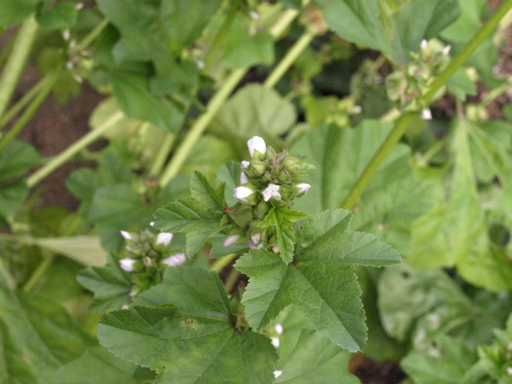 아욱 꽃은 별 볼품이 없고 잎이 오히려 더 곱다.