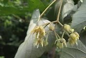 껍질은 회색, 작은 가지는 자갈색이다. 잎은 난형 또는 원형, 길이 4cm, 가장자리에 잔 톱니가 있으며, 뒷면 맥에 털이 있다.