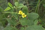 딱지꽃은 깃꼴겹잎으로 전초에 털이 많은 것이 특징이다.