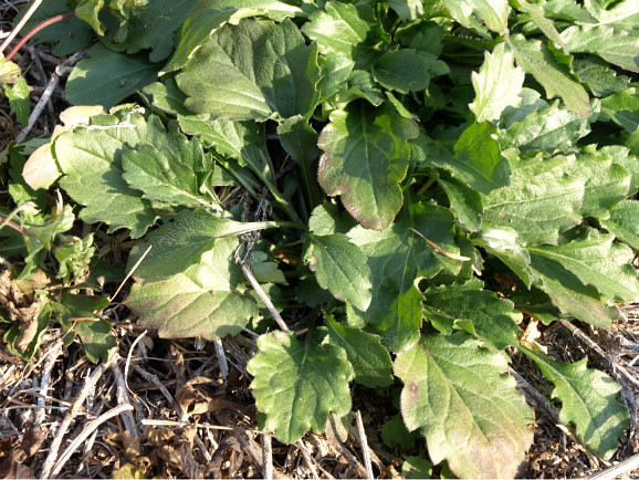 근생엽은 꽃이 필 때 쓰러지고 엽병이 길며 난형이고 가장자리에 뾰족한 톱니가 있으며