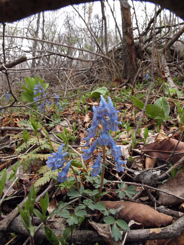 이번 탐사에서 발디딜 틈도 없이 깔려 있는 파란 갈퀴현호색 밭에서 함께 파랗게 물들었습니다.
