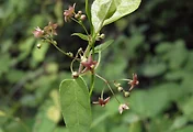 전신주 지지대 철사줄에 기어 올라서 모델까지 멋지게 자세를 잡고 있었다. 잎자루 기부에 돌기가 있다.