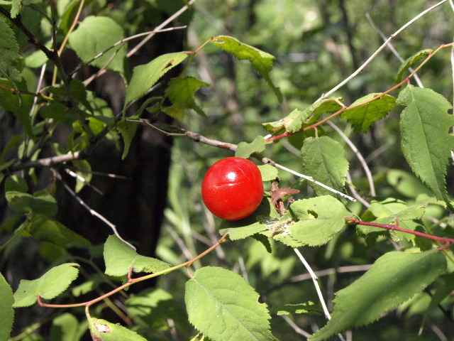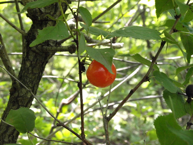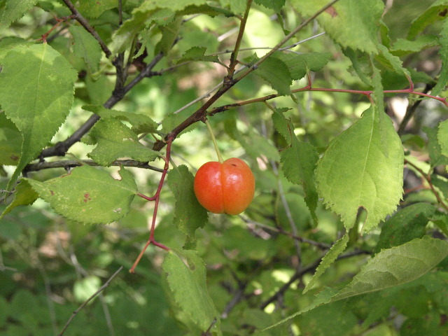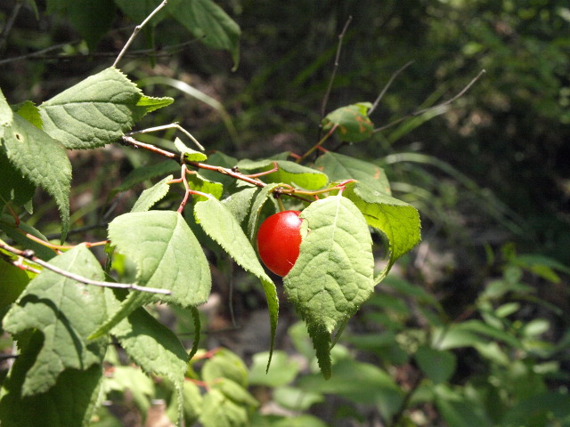 앵두만한 빨간 이스라지 열매가 눈에 들어온다. 나무 크기는 채 1m 도 안되는데