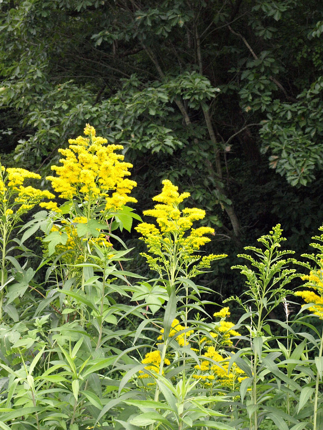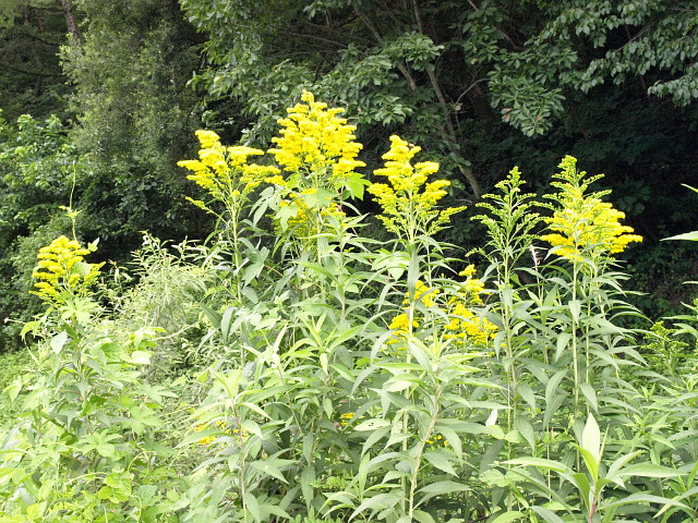 밋밋한 여름 시골길을 미국미역취가 맛을 내어주어서 심심치는 않다.