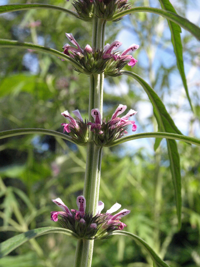 익모초 잎을 짓찧어 즙을 내어서 민간 약재로 사용했다고 한다. 꿀풀과 이년생 초본이다.