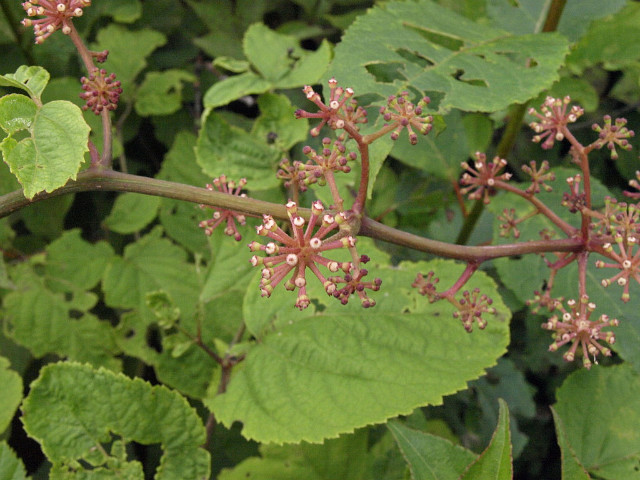 가지와 원줄기 끝 또는 윗부분의 엽액에서 큰 원추화서가 자라며 총상으로 갈라진 가지 끝에 산형화서가 달린다.