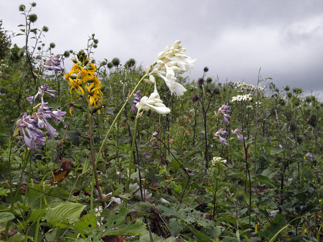 주변의 풀들이 많이 밟혀져 있었지만 천상의 화원은 곰취, 수리취, 일월비비추로 꽃잔치가 열리고 있었다.