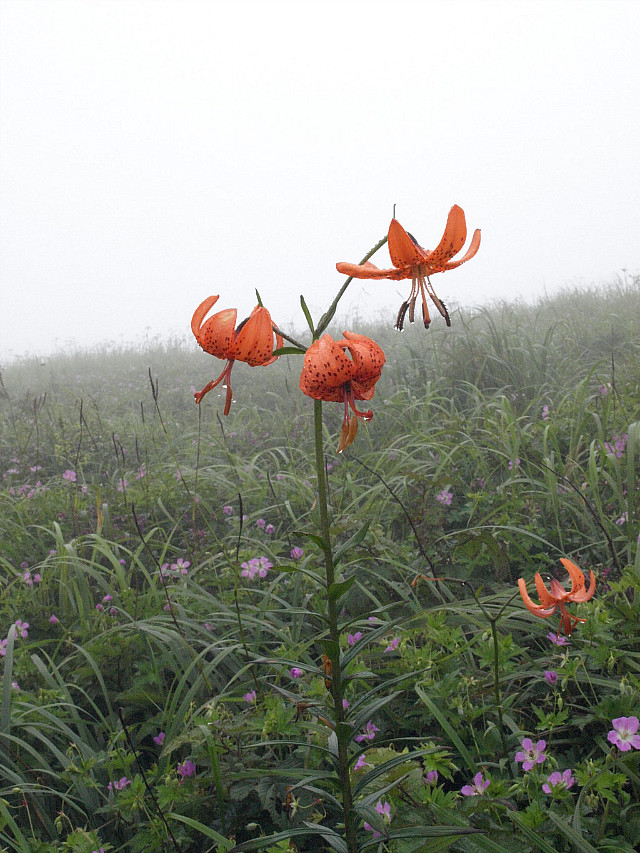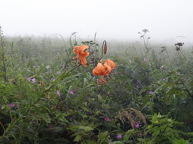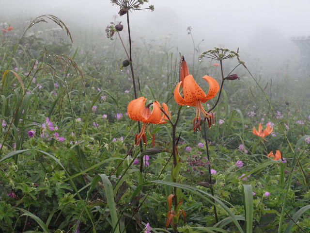 대피소 부근의 북사면 평원에 중나리가 흐드러지고 있다.