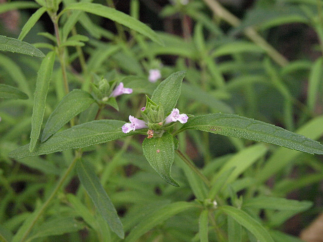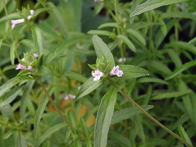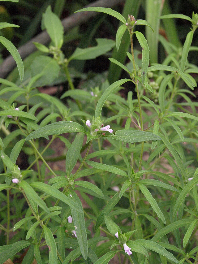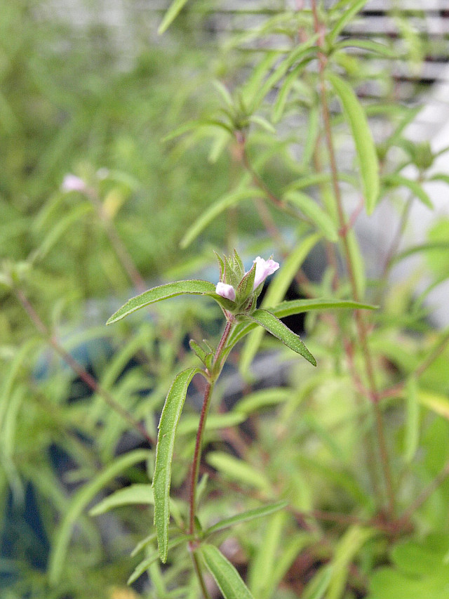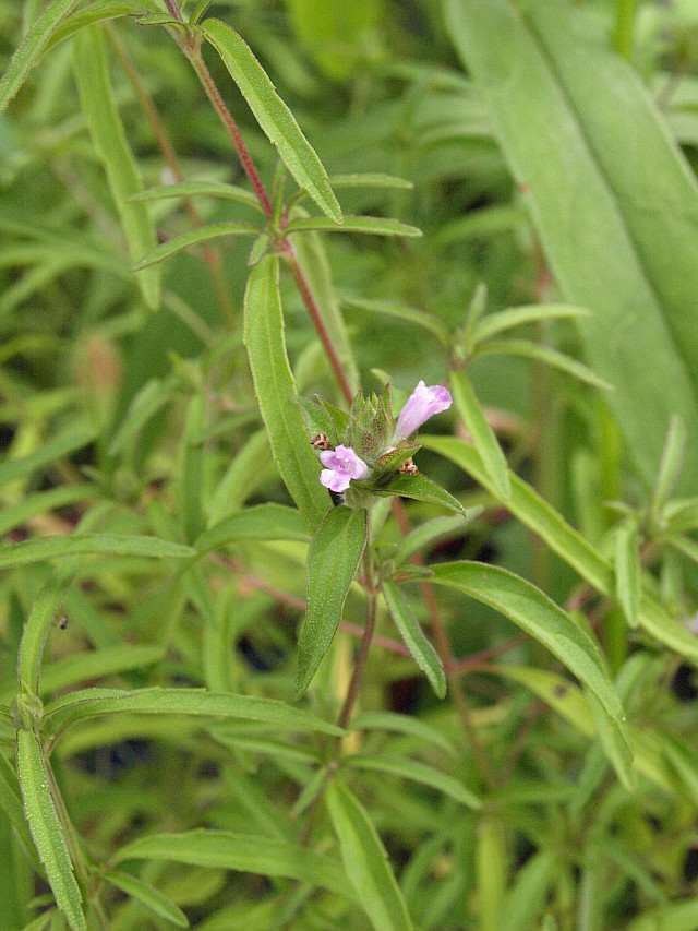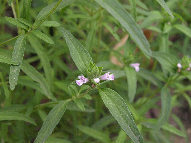 잎이 가느다란 선형에 줄기는 모가 나 있다. 줄기와 잎, 꽃받침에 성모가 있다.