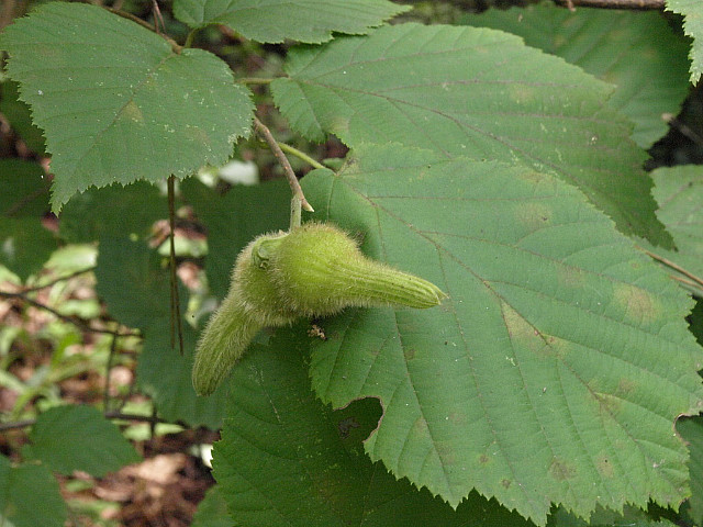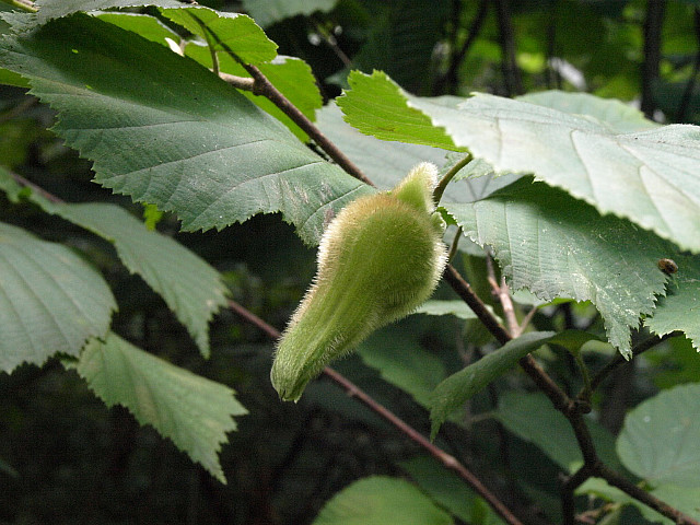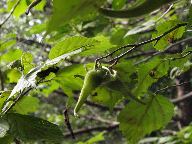 물개암나무 : 총포가 열매에서 급하게 좁아지지 않고 길게 자라면서 총포의 끝이 좁아진다.