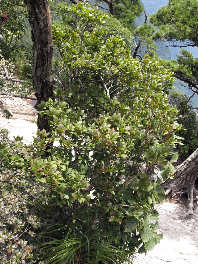 높이 2-3m이고 소지는 연한 갈색이며 인편이 있고 털이 있다.
