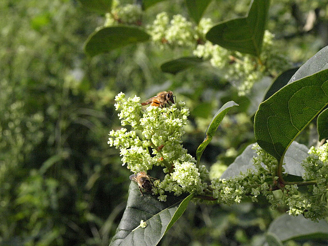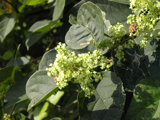 짐작대로 한창 연두색 기운이 있는 꽃을 피우고 있는 감절대 꽃 송이에 꿀벌이 디룩거리며 꿀을 찾아 헤매고 있었다.