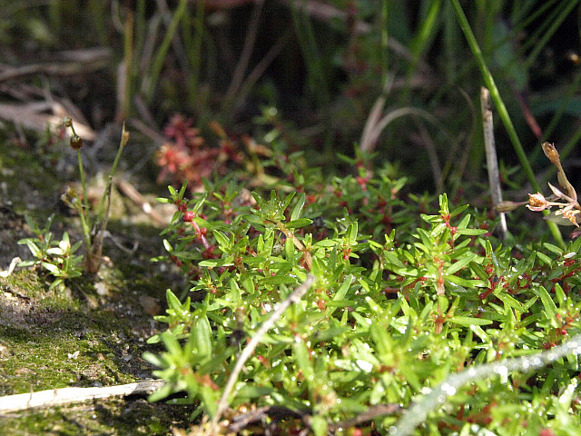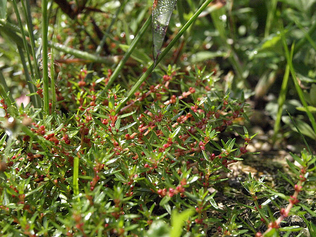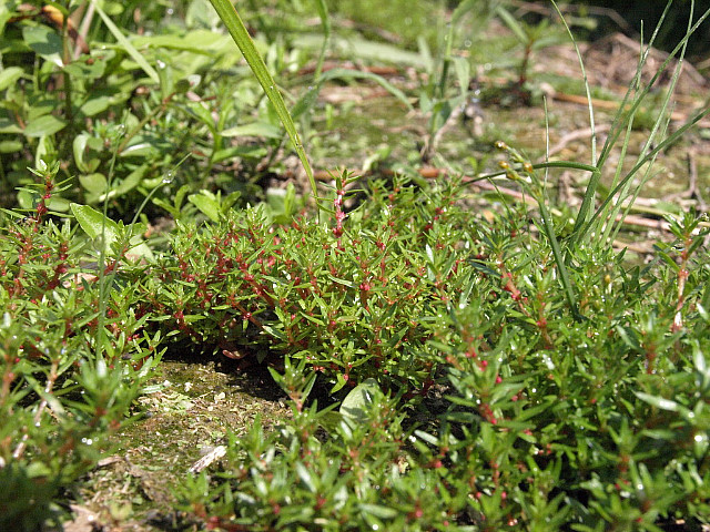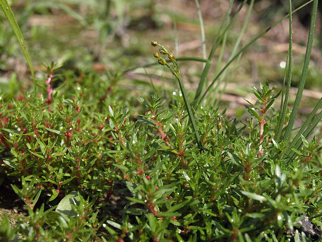 붉은 줄기에 채송화 잎같이 가느다랗고 길쭉한 잎, 마디마다 맺힌 꽃은 눈여겨 들여다 보아야 보인다.