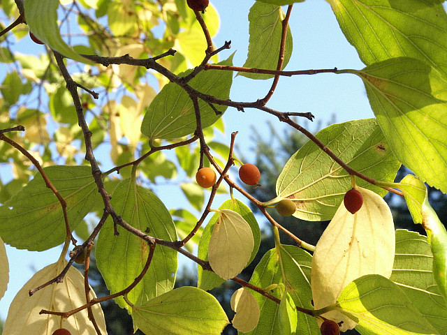 핵과는 둥글고 지름 7-8mm로서 노란색-붉은색-홍갈색으로 변하며 10월에 성숙한다.