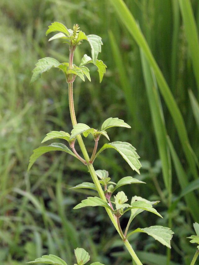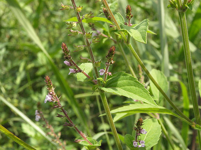 줄기는 홍자색이 돌고 둔한 사각이 지며 백색 털이 있고 특히 마디 부분에 털이 많으며 향기가 있다.