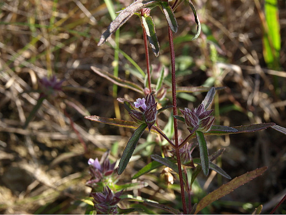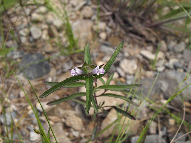 꽃자루에 털이 밀생. 꽃받침 위쪽 3개의 톱니가 좁고 날카롭게 갈라짐. 포엽은 가늘고 긴 피침형