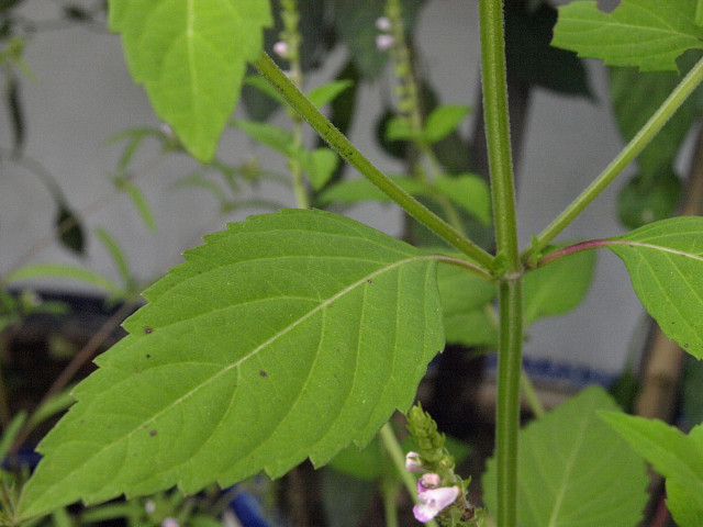 줄기는 네모나고 능선에도 털이 있다.