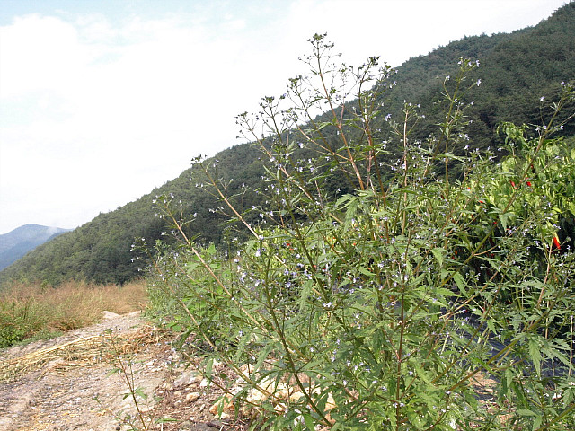 2009. 9. 12. 온혜 들녘. 청량산 가는 길에 들녘 농로를 흘낏거리는데 오잉? 개차즈기 같은디.....멀찌감치 느껴지는 청록색의 분위가 아무래도 개차즈기 같다.돌아올 때 확인해야 겠다고 그냥 지나쳤는데, 소나기에 쫓겨서 허둥지둥 하산하여 오던 길에 잊지 않고 차를 멈추었다. 헌데 멀리 떨어진 풀 무더기까지 가기도 전에 바로 도로 옆 밭 가에 역시 짐작했던 개차즈기가 포기도 튼실하게 개화를 시작하고 있다.반야마을에서 개차즈기를 만나서 담았지만 이렇게 튼실한 녀석을 보니 또 그냥 지나칠 수야 없지 않간? 개차즈기는 이태 전에 갈라산 자갈밭에서 처음 만났더랬는데, 지난 주에도 갈라산에 갔다가 콩포기 사이에 서 있는 모습을 확인하였다.헌데 산짐승이 콩을 따 먹지 못하게 하려고 밭 둘레를 온통 전기철사로 뺑 둘러 놓아서 접근할 수도 없었다. 하기사 반야마을에서 담았으니 그리 미련은 없었지만 반야에서 담지 못하였다면 무리를 해서라도 그 밭으로 들어 갔을 거다.그랬더라면 혹시