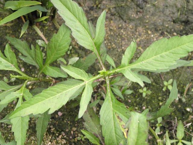 가막사리는 가장자리에 톱니가 있거나 3-5개로 갈라지며 엽병은 날개가 약간 있다. 톱니가 둔하고 부드럽다.