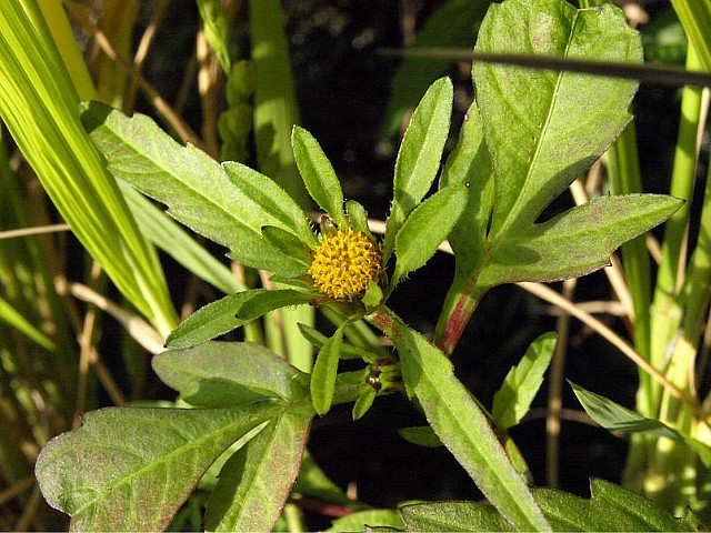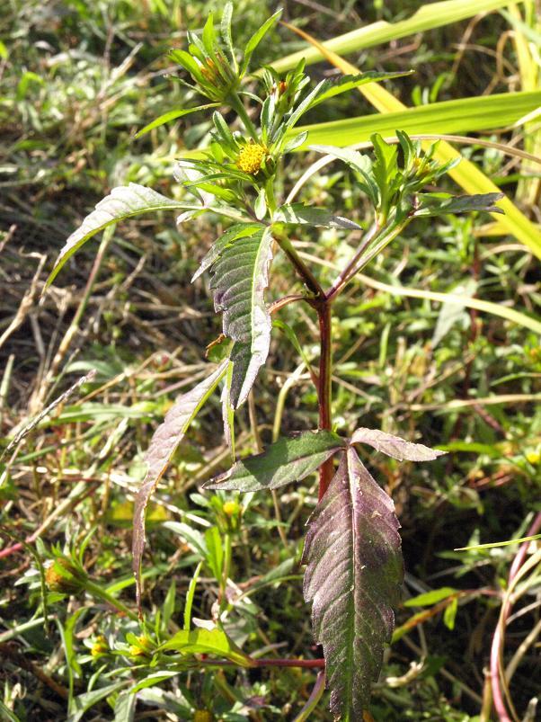 미국가막사리는 소엽이 3-5개이고 소엽은 엽병이 없으며 끝이 길고 날카로우며 가장자리에 날카로운 톱니가 있다.