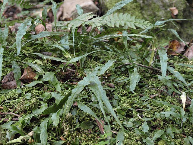 계곡 이끼 낀 바위 위에 일엽초가 싱싱하길래 옆의 거미고사리와 함께 담아 왔다.