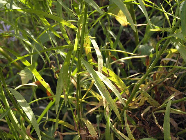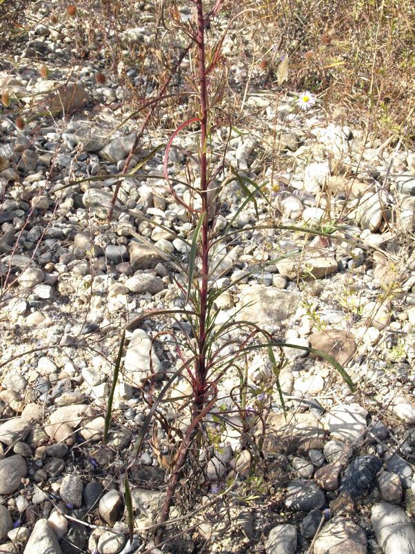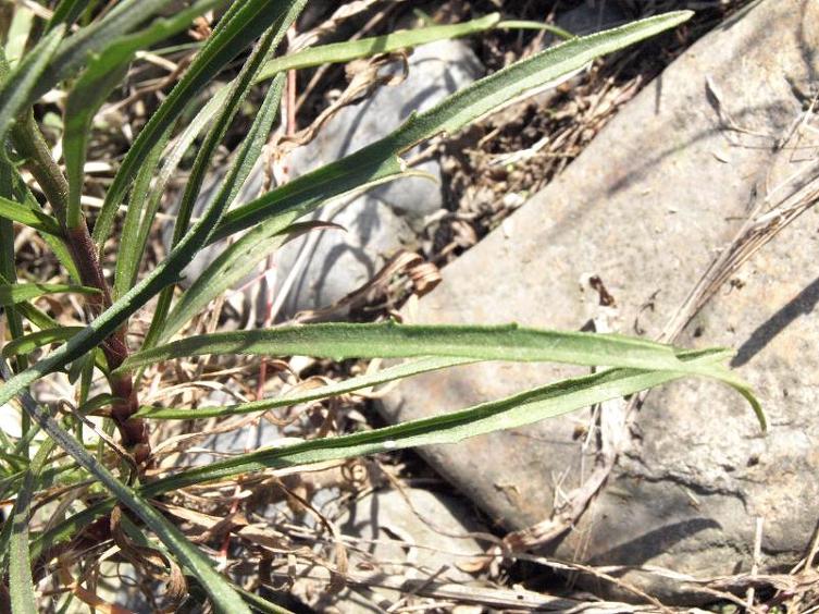 절벽 옆 풀 속에 꽃피고 있던 이 녀석은 잎이 위나 아래나 길고 가느다란 잎을 가지고 있었다. 그런데 아래쪽 잎은 꽤 너비가 보이고 강천의 아래쪽 잎에 있는 결각상 톱니가 안보인다.