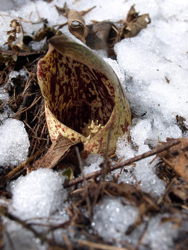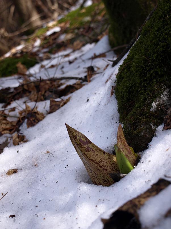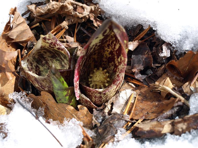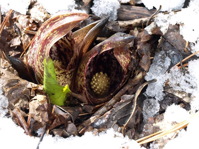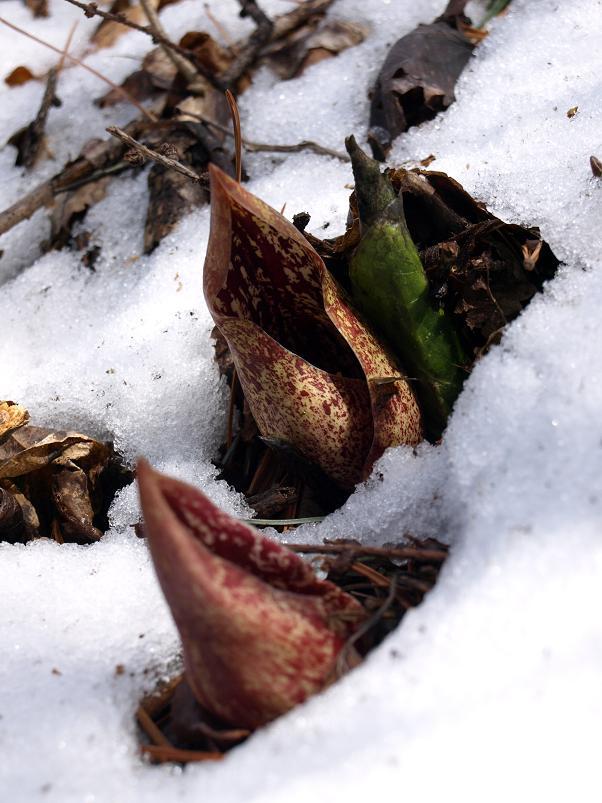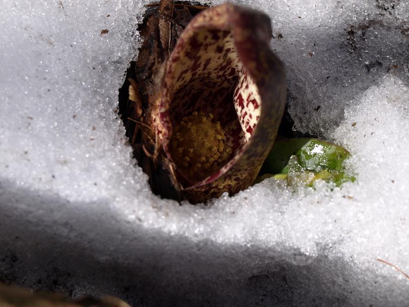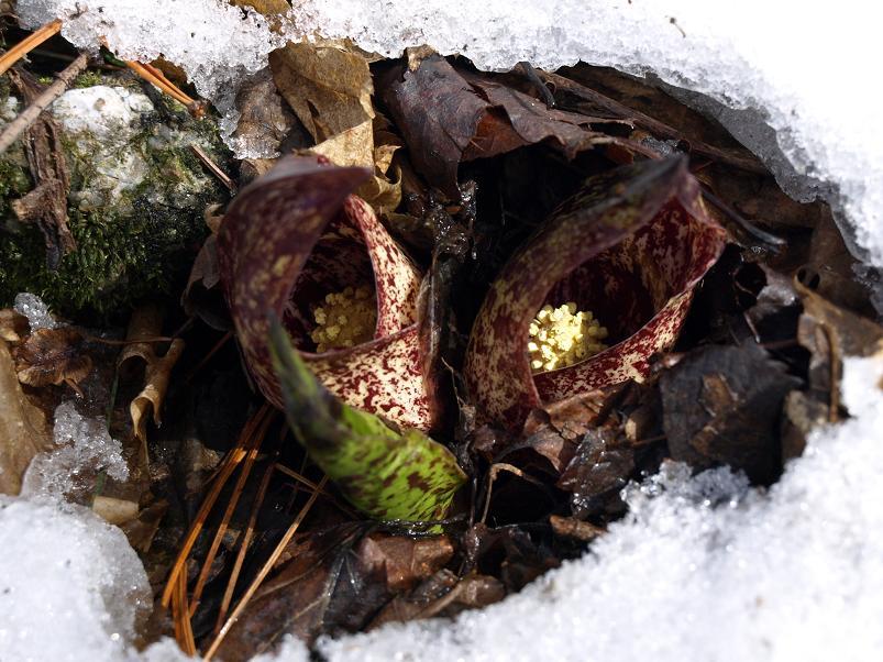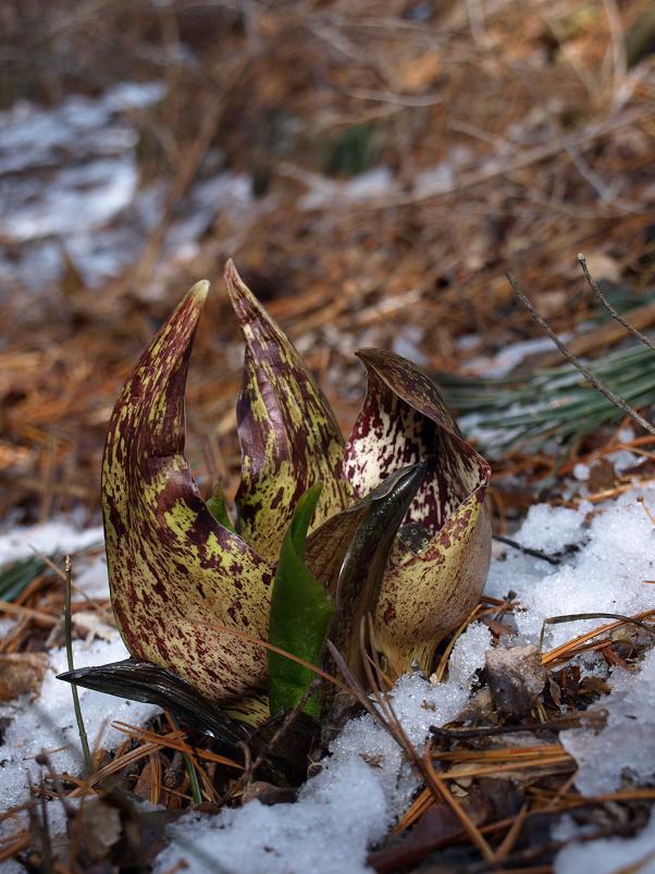 대신에 새 개척지에서 담은 설중 앉은부채입니다. 완전히 밭을 이루고 있는 앉은부채 군락에 발을 옮기기 조심스러울 정도라.