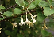 잎은 길이 3-8cm, 폭 1.5-3cm로서 호생하며 두껍고 타원형 또는 좁은 도란형이며 첨두 또는 둔두이고 예저이며 혁질이고