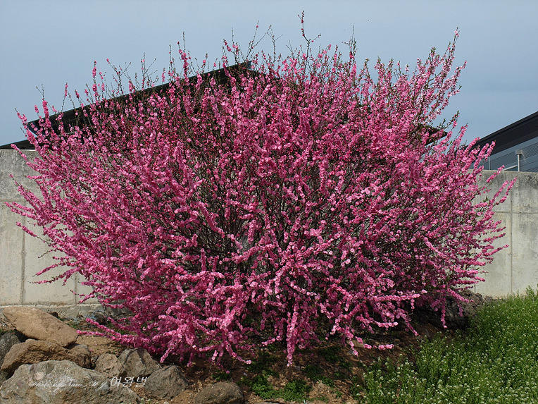 그냥 앵두나무려니 했었는데 유난히 붉은 기운이 강한 분홍색에 꽃이 커서 눈길을 끈다.