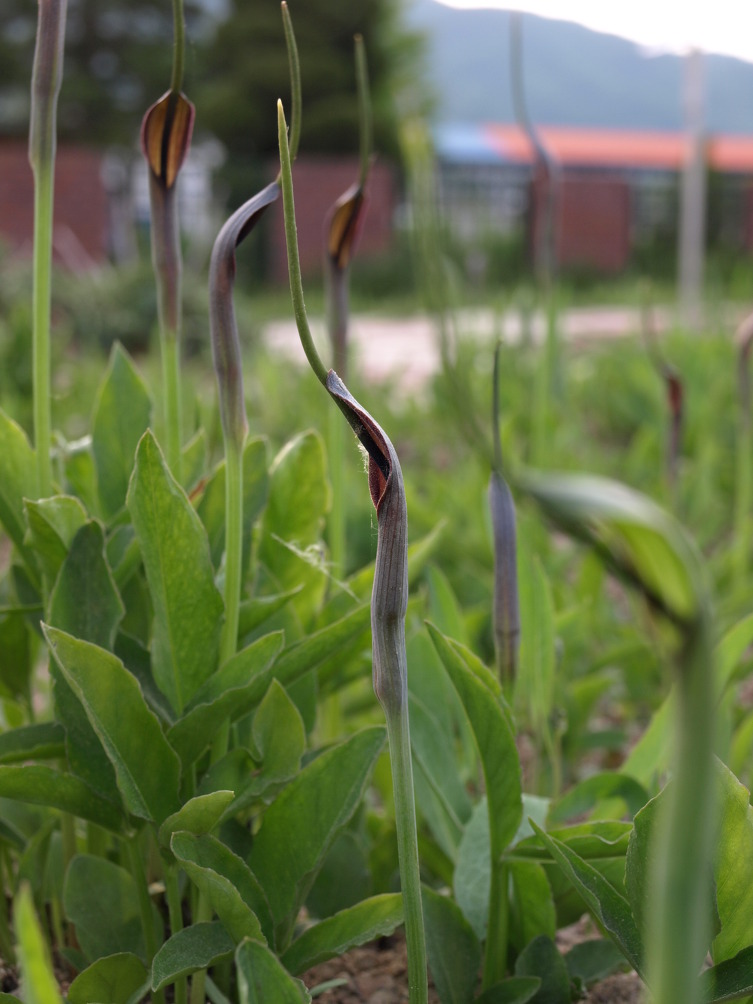 천남성과라서 화서 마치 두루미천남성 모양이 비슷하다.