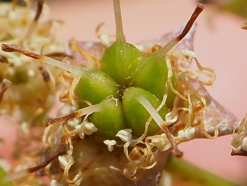 화경과 소화경에 털이 없고 열매 봉선을 따라 약간의 털이 있다.