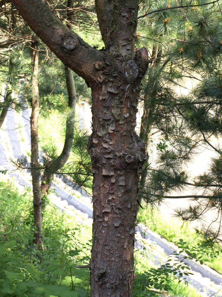 나무 꼭대기에는 작년 봄에 결실한 잣 송이가 벌써 주먹만해 졌다. 올 가을에 꽤나 수확할 수 있을 것 같다.