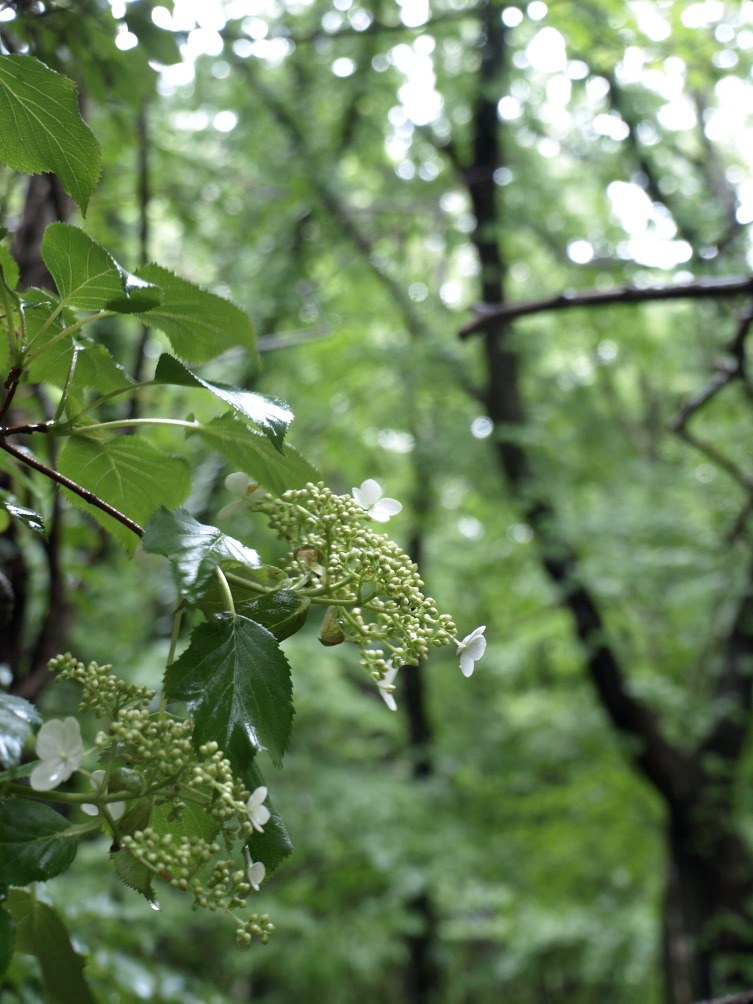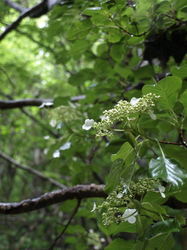 제주의 숲에는 덩굴성 수국인 바위수국과 등수국이 어두운 숲을 하얗게 빛내고 있다.