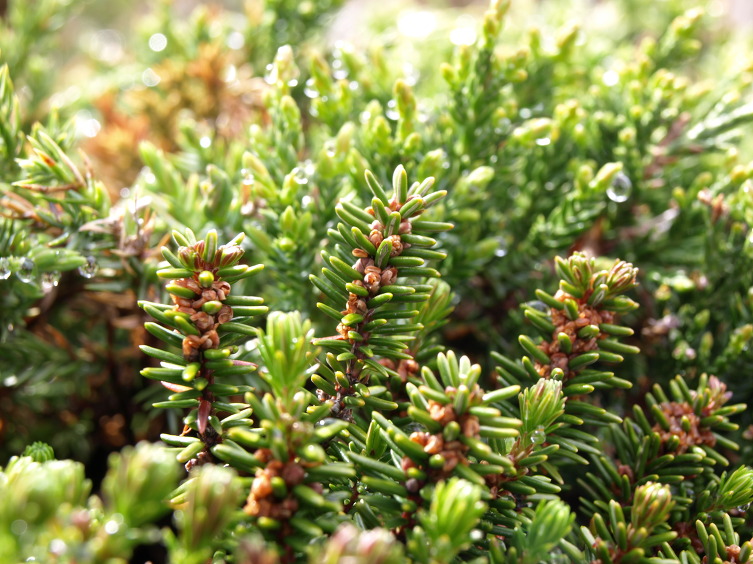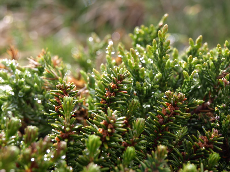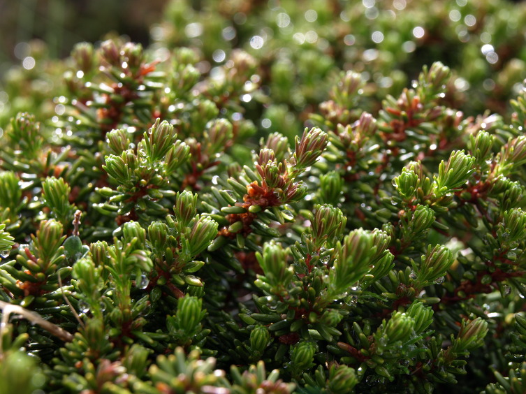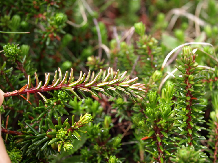 잎 사이 붉은 색이 꽃이다. 시로미는 암수딴그루이거나 잡성화이거나 한단다.