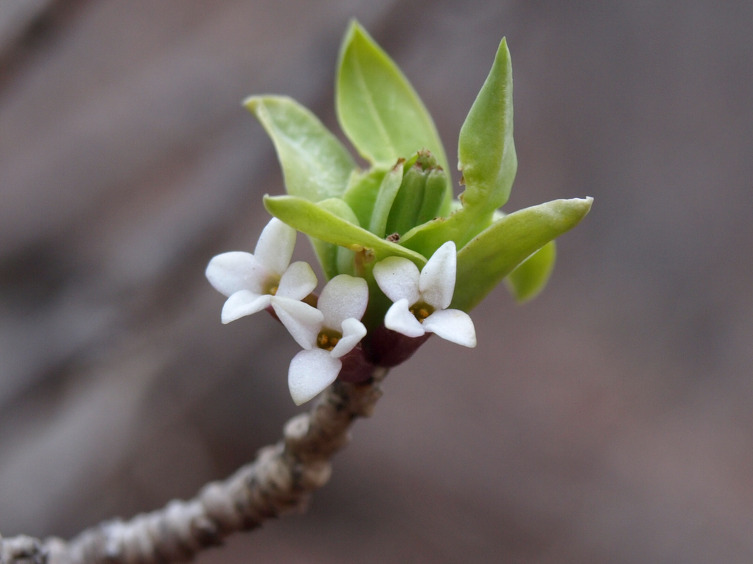 총상화서는 전년지 끝의 엽액에 발달하고 2~5개의 꽃이 달린다.