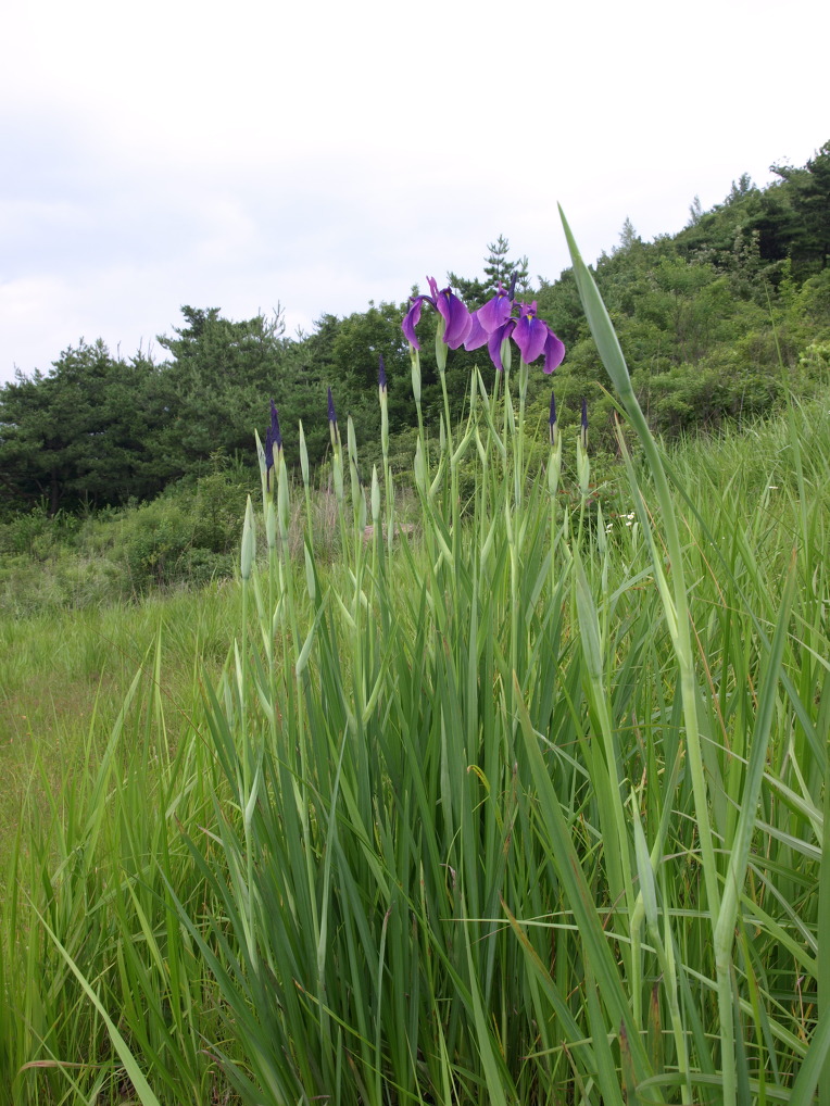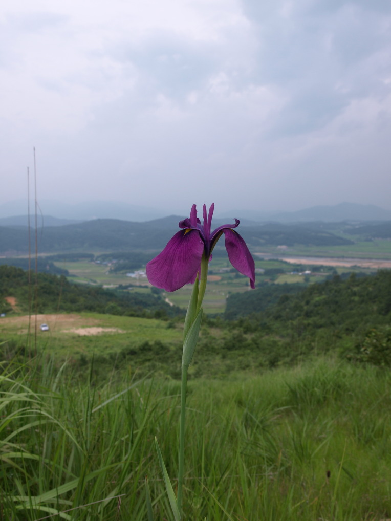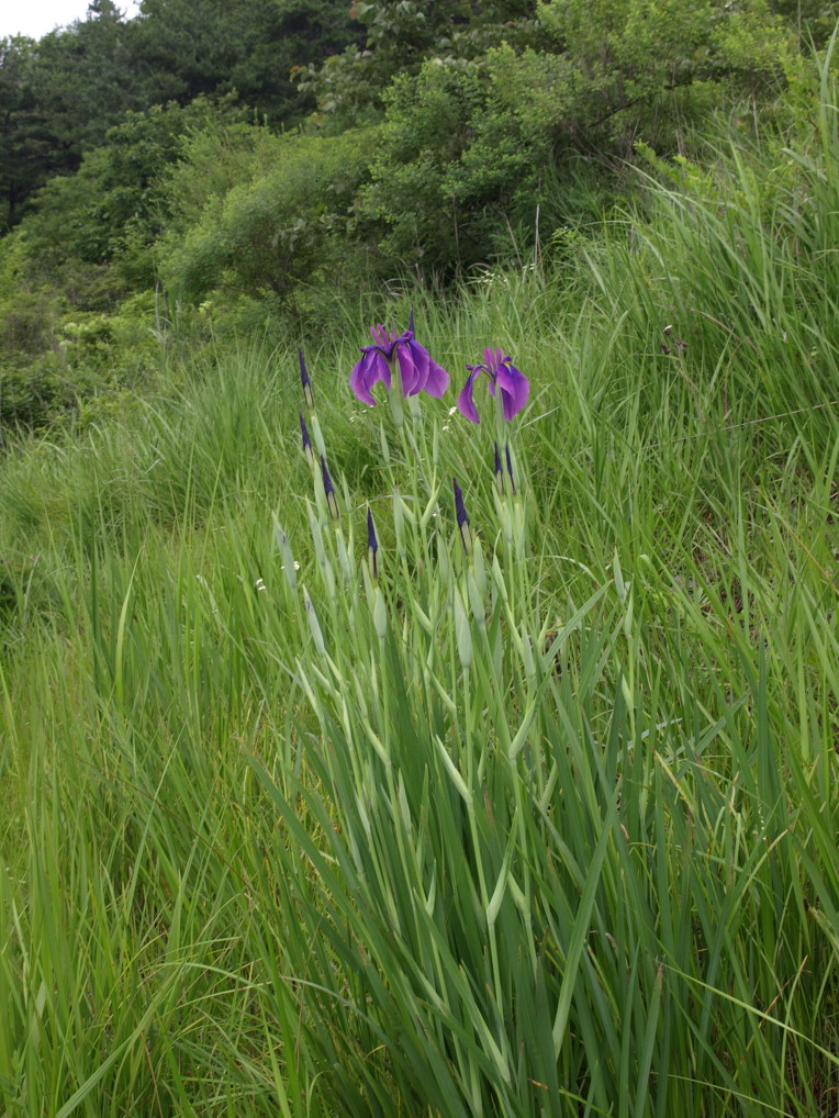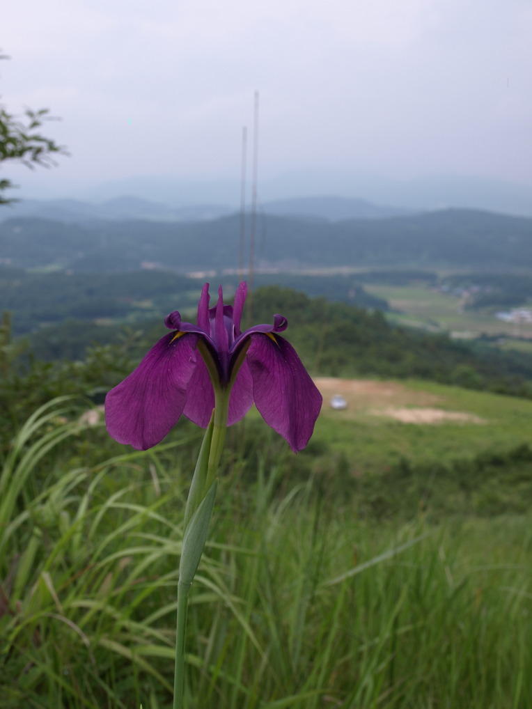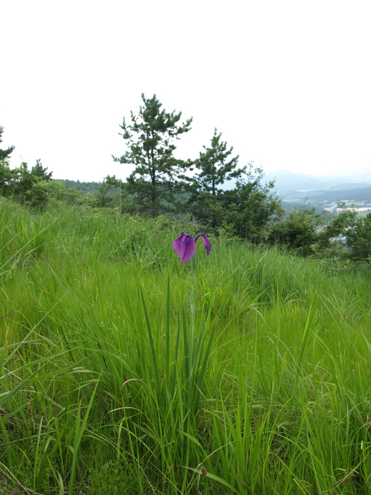 낮게 드리운 비구름 아래 산정 습지에는 보라색 꽃창포가 한창이었다.