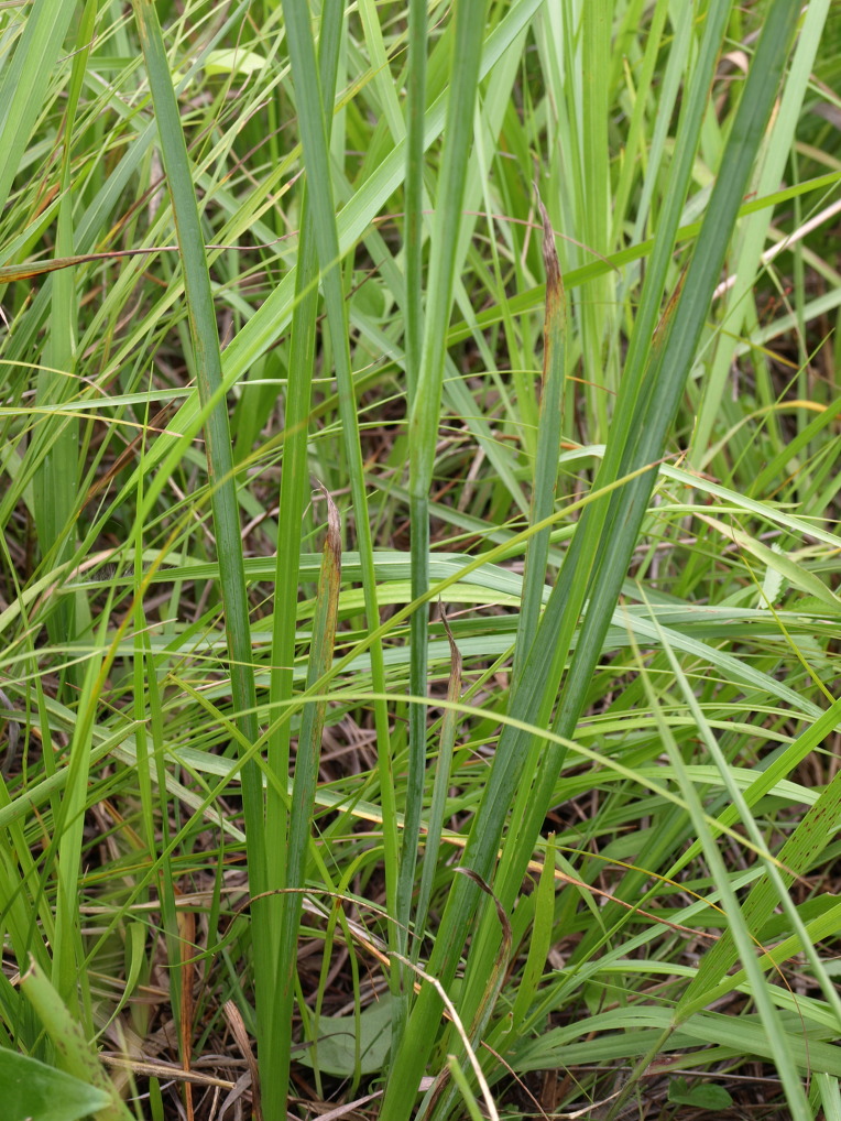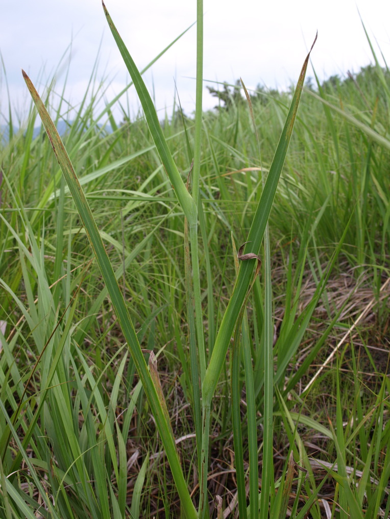 잎은 길이 20-60cm, 나비 0.5-1.2cm로서 2줄로 늘어서고 중륵이 뚜렷하다.