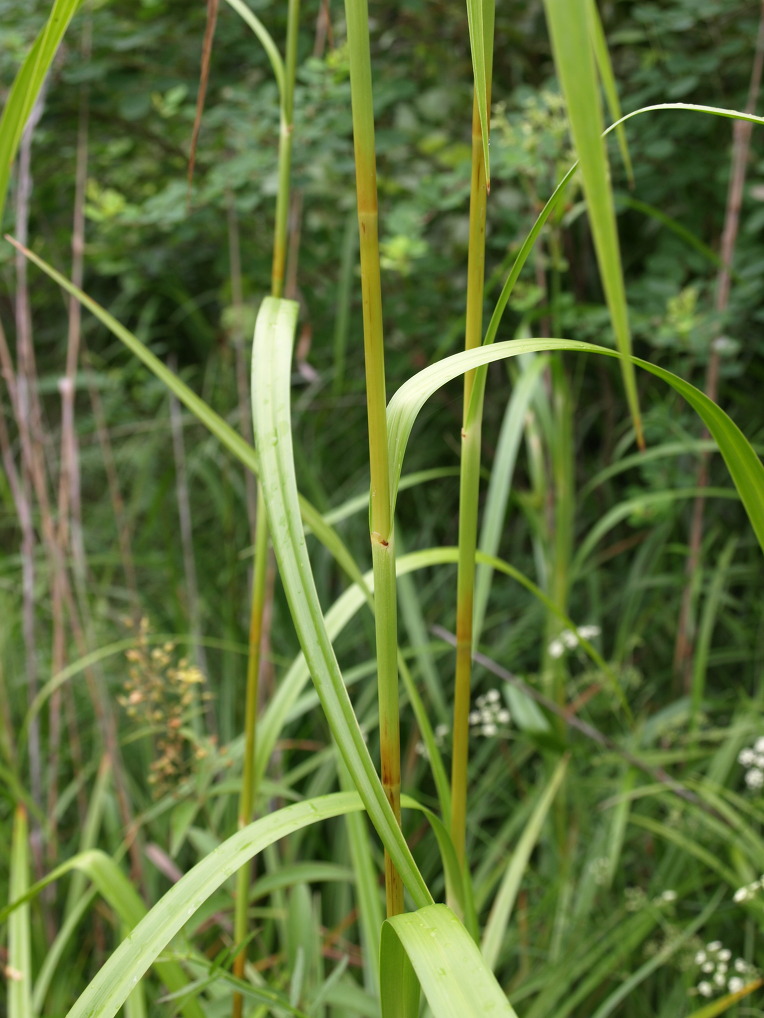 높이 80-150cm이며 둔하게 세모지고, 5~7개의 마디가 있다.
