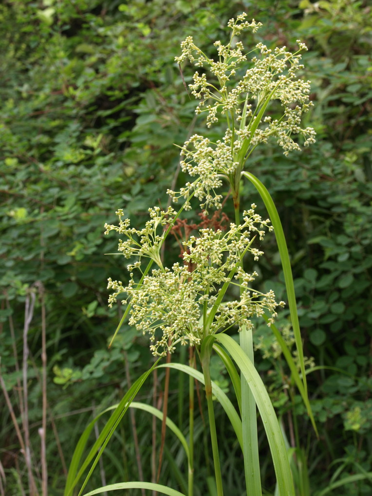 기부에서 난 잎은 엽초만 있다. 화경(花莖)에 달린 잎은 편평하거나 안으로 약간 접어들며 폭 3-6mm로서