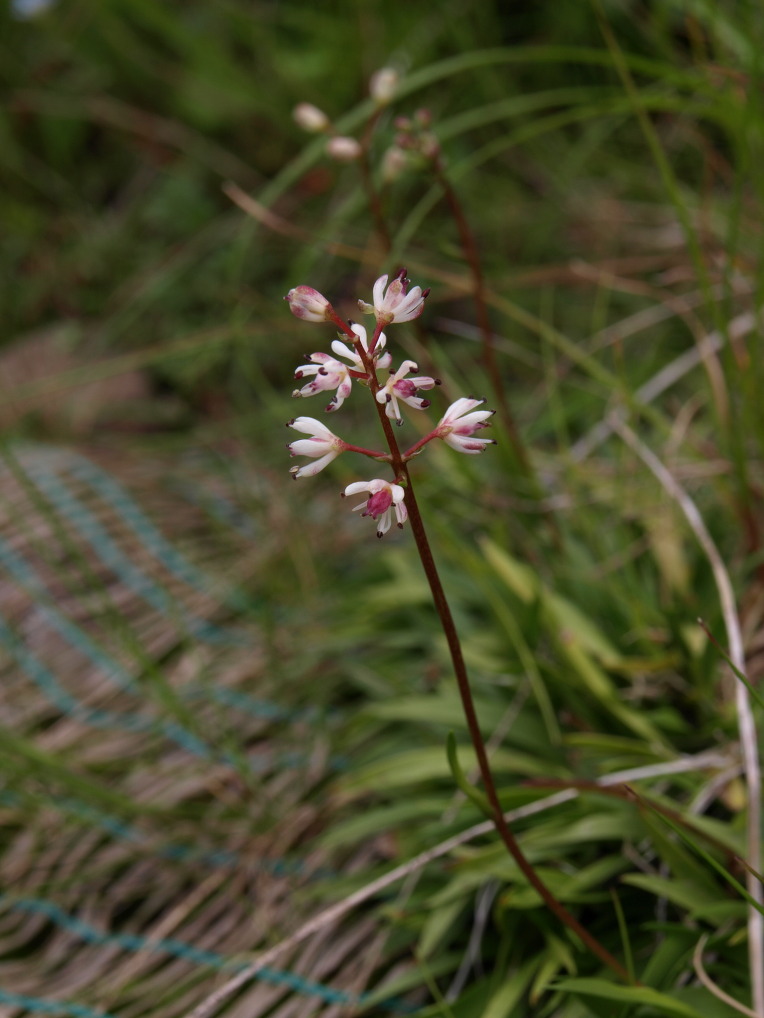 꽃은 6~7월에 백색으로 피고 총상화서로 약간 성글게 달리며 화서는 길이 6cm에 달하고 소화경은 과시에 길이 1.5~5mm이다.