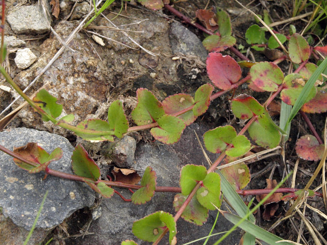 잎은 마주나고 길이 7~15㎜, 너비 5~10㎜로 작다. 잎가장자리에는 가느다란 톱니가 있다.