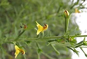 꽃받침잎은 5개로서 황록색이고 꽃잎은 없으며 소화경과 소포도 없고 수술은 5개, 암술대는 2개이다