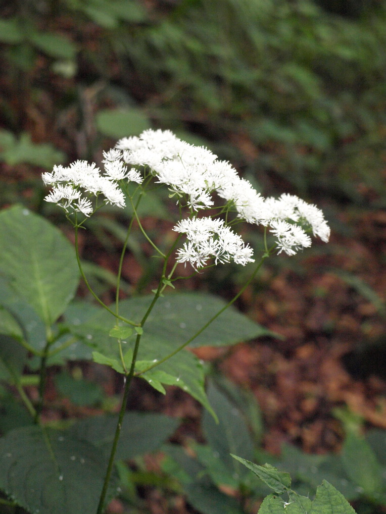 이 녀석은 높은 산 깊은 숲 그늘을 좋아한다. 흰색의 커다라 화서로 어두운 숲의 등불 역할을 한다.