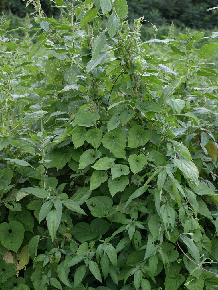 학교 주변 밭에 생약명 백수오라 부르는 박주가리과 <이엽우피소>가 보인다.