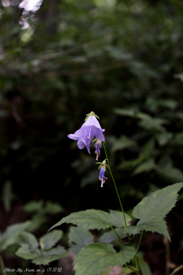 애기앉은부채 만나러 들어가는 숲 길에 곱게 피어 있는 모시대 한 포기
