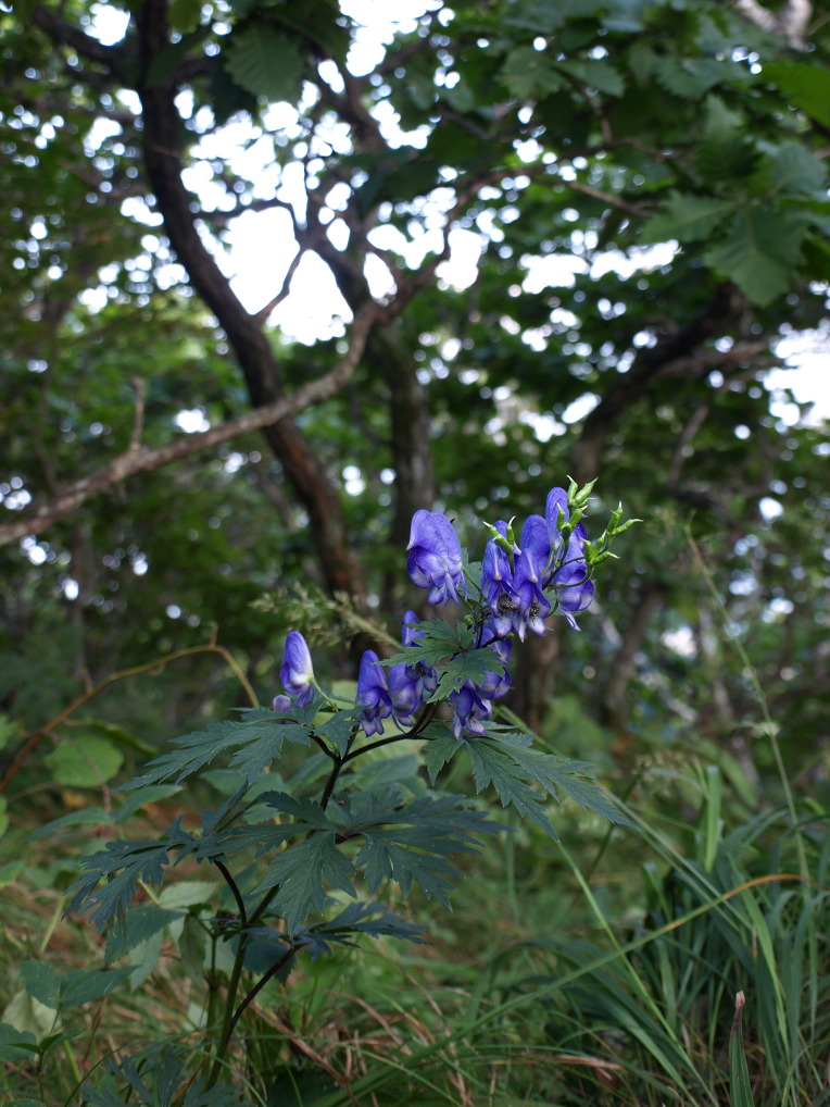강원도 높은 산 신갈나무 숲 그늘에 투구꽃이 파랗게 색을 내고 있다.