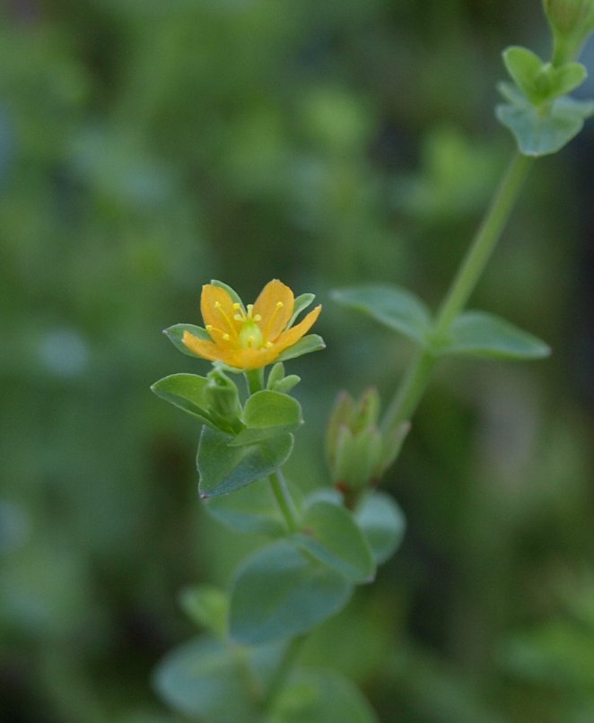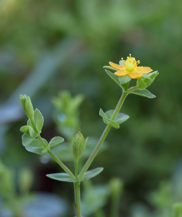 애기고추나물 : 수술은 10~20개 정도이고, 꽃받침은 가늘고 뾰족함, 잎의 밑부분이 줄기를 반 정도 감싼다